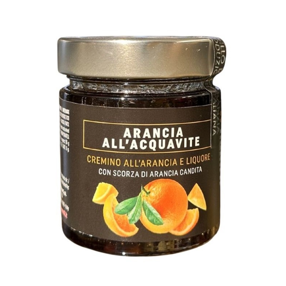 Cremino di arancia all'acquavite, con scorze di arancia. Sorprendente negli abbinamenti con formaggi. Senza glutine
